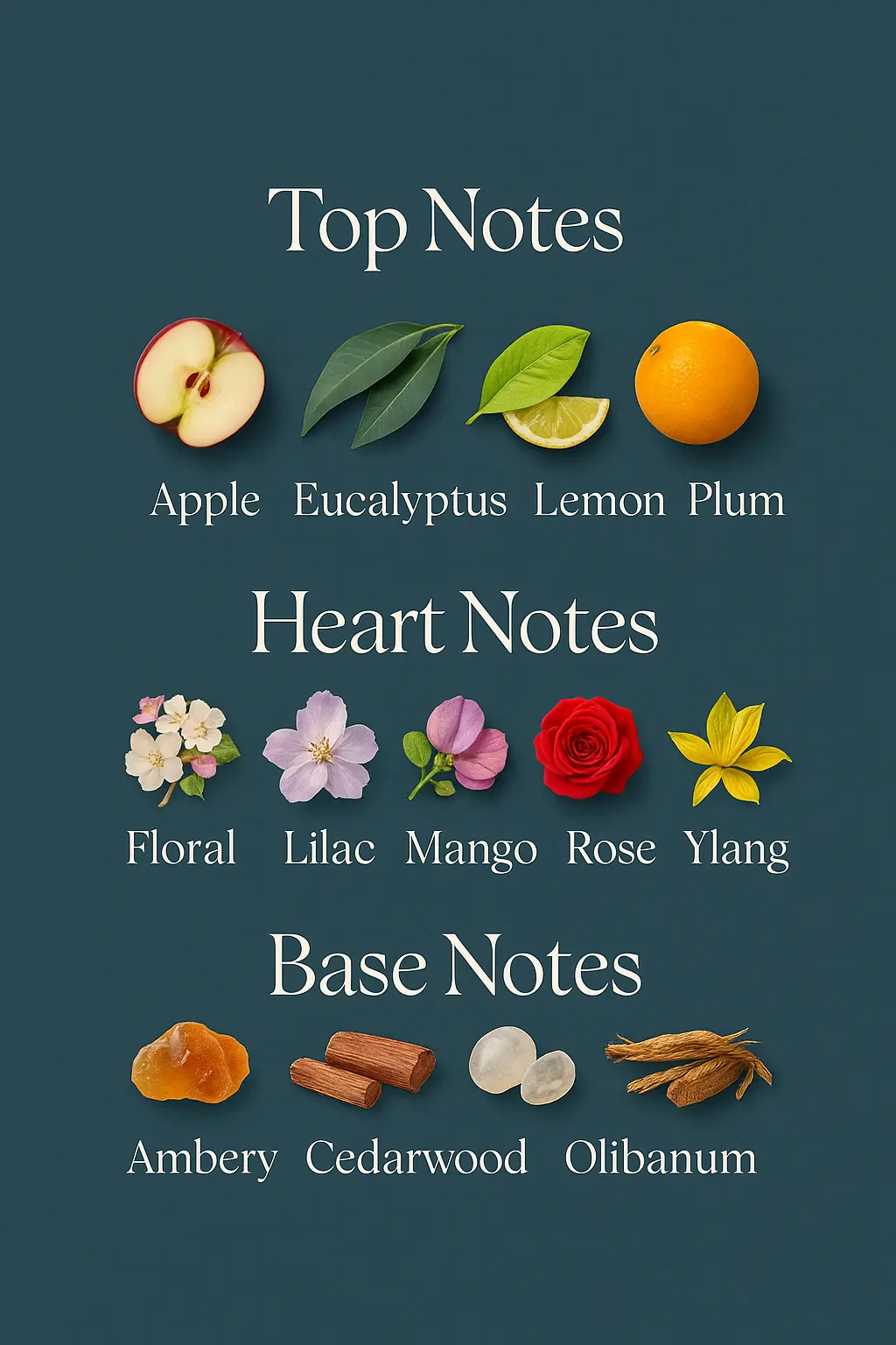 Fresh, airy, and effortlessly elegant. Kalahari Mist opens with crisp eucalyptus, lemon, galbanum, and orange, flows into soft floral notes with lavender and rose, and settles into a smooth base of amber, cedarwood, sandalwood, and musk.