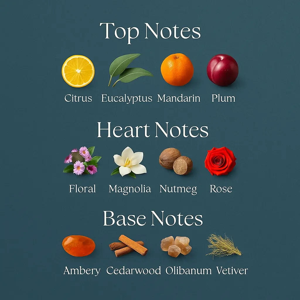 Seductive, warm, and unforgettable. Sweet Venom starts with bold citrus, eucalyptus, mandarin, and plum, melts into a sensual heart of magnolia, rose, nutmeg, and floral notes, and finishes with deep amber, cedarwood, olibanum, and vetiver.